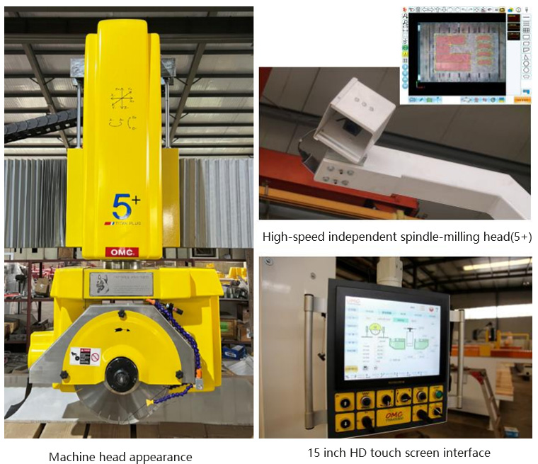 TITAN PLUS 5+ is the new generation multi-function processing machine which is associated to be designed and manufactured between OMC and research institute of famous college. With pattern operation and advanced control system and synchronous CNC control system, the machine can be easily operated easily without knowing complicated CNC knowledge. This machine can be used to realize some advanced functions like : cutting line, chamfering, drilling, profiling, 3D profiling, and edge profiling, which can be used to small processing factory and countertop shops.
