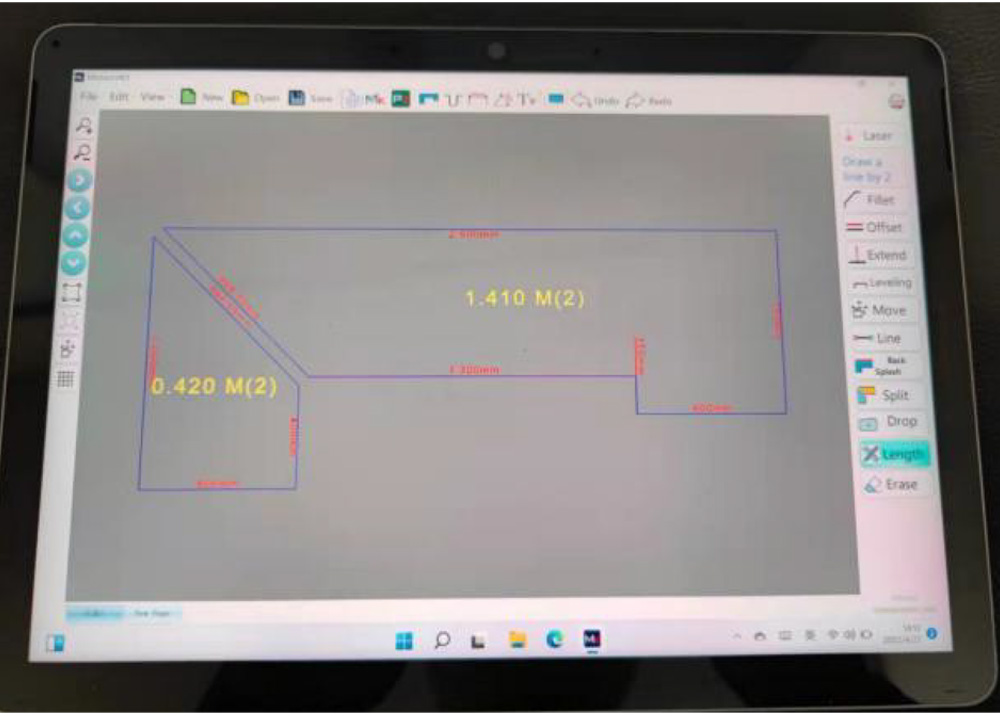 1. 軟件系統(tǒng)自主研發(fā),配合MeasureKit軟件和與五軸橋切配套的PlanSmith無縫銜接軟件完成現(xiàn)場測量、拆單、繪圖、排版等。