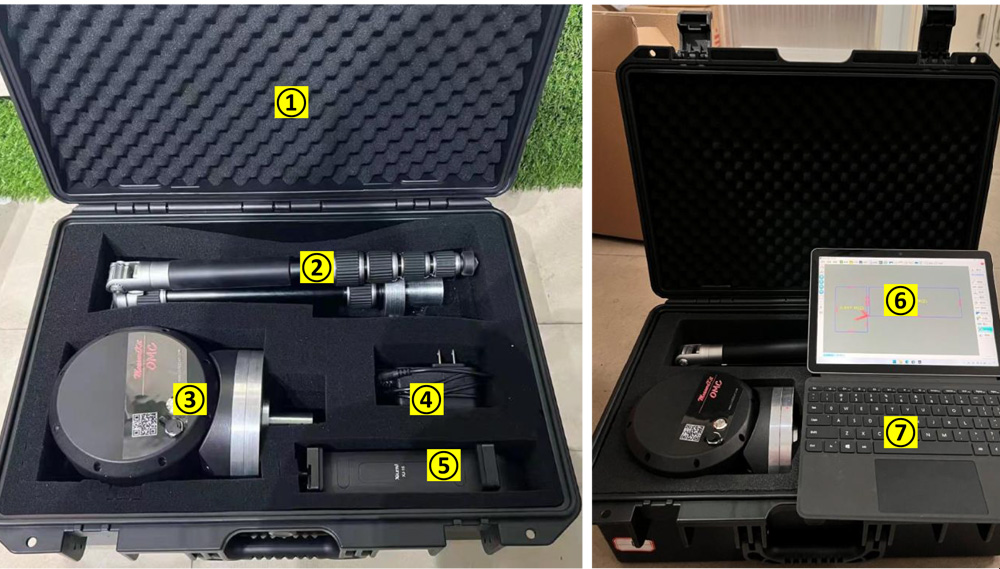 發(fā)貨包括:工具箱、測量儀支架、測量儀頭、電源線、平板電腦夾具、平板電腦、鍵盤