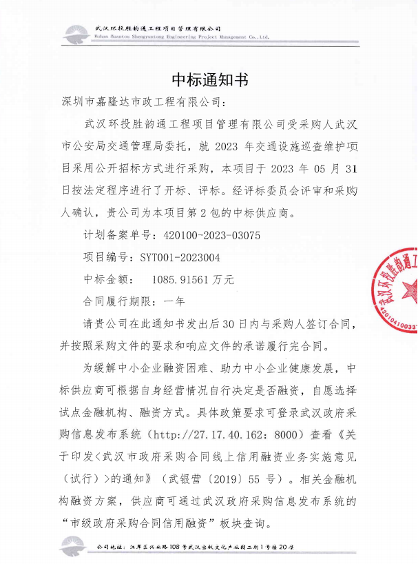 喜訊!公司中標(biāo)2023年交通設(shè)施巡查維護(hù)項(xiàng)目(第2包)